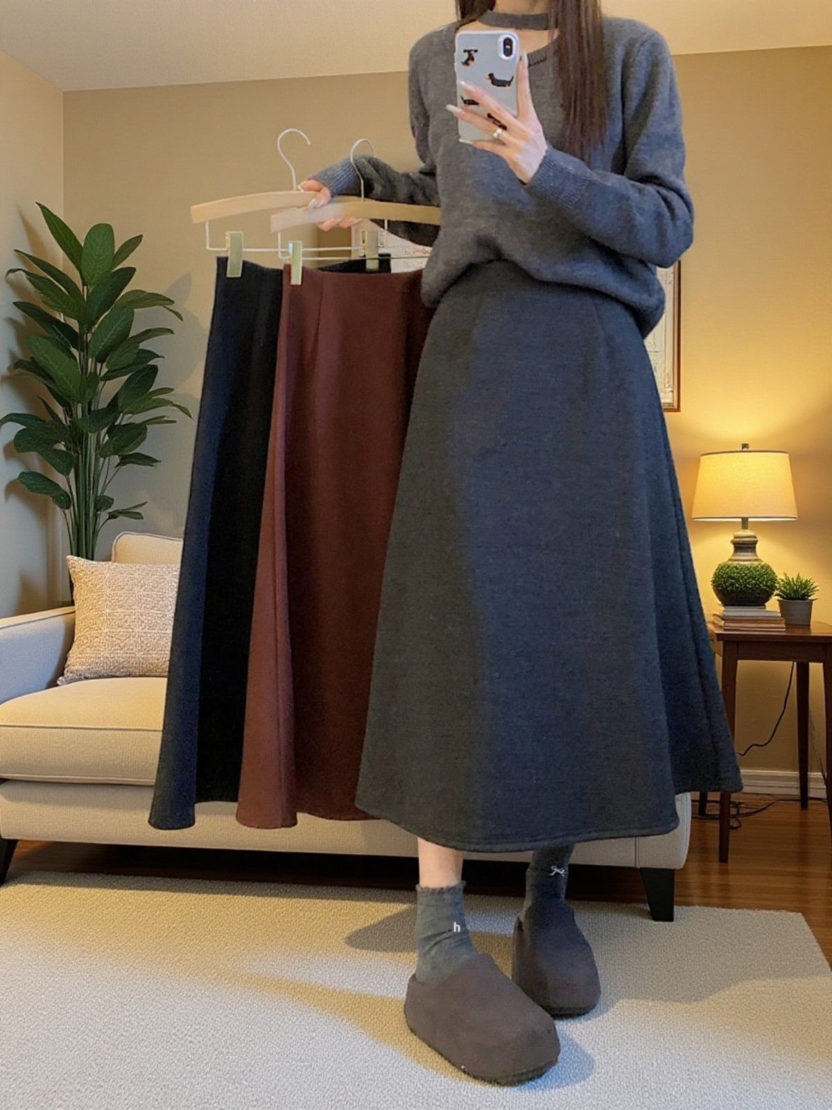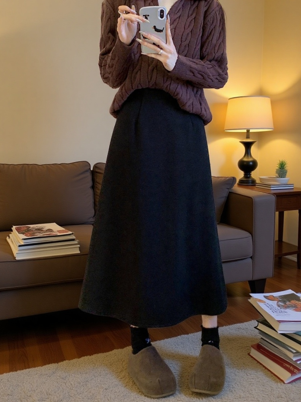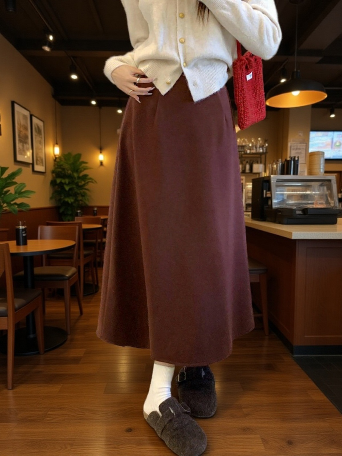 ● 겨울 시즌에 어울리는 따뜻한 기모 소재로 제작되어 한파에도 포근하게 착용할 수 있는 미디 스커트입니다.