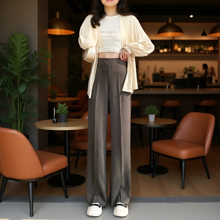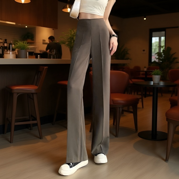 여성 봄가을 작은 키 슬림 와이드 팬츠 처짐 옆 지퍼 정장 팬츠 힙업 일자 팬츠 하이웨스트 캐주얼 팬츠
